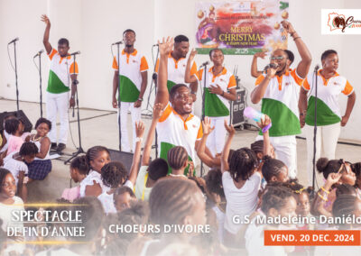 Gallerie Spectacle de Fin d’Année Spectacle de Fin d’Année avec Chœurs d’Ivoire au G.S. Madeleine Daniélou VOIR LES VIDEOS